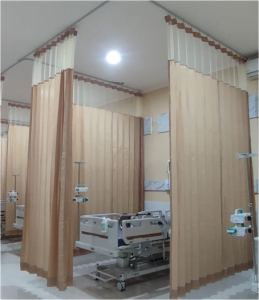 - Setiap tempat tidur harus dilengkapi dengan tirai atau partisi untuk menjaga privasi pasien. Hal ini penting untuk memberikan ruang pribadi bagi pasien selama perawatan, yang bisa meningkatkan kenyamanan dan kepuasan mereka.