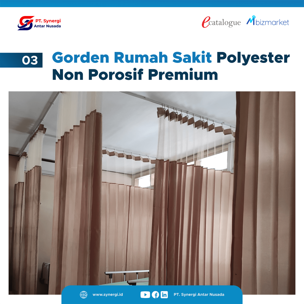 Gorden Rumah Sakit Polyester Antibakteri Delux terbuat dari material polyester 100% yang sangat ringan, bisa membuat ruangan menjadi lebih sejuk dan tidak merasa panas.